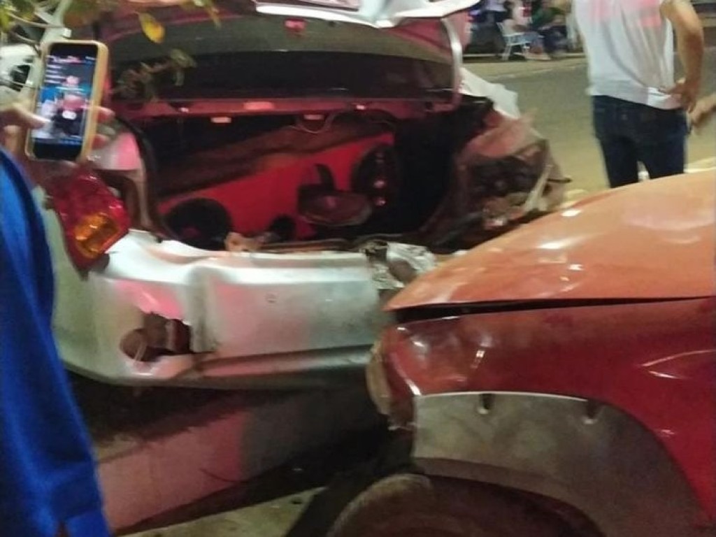 O condutor de um veículo Strada por motivos não informados, perdeu o controle da direção e bateu na traseira de um veículo Corolla que estava estacionado.