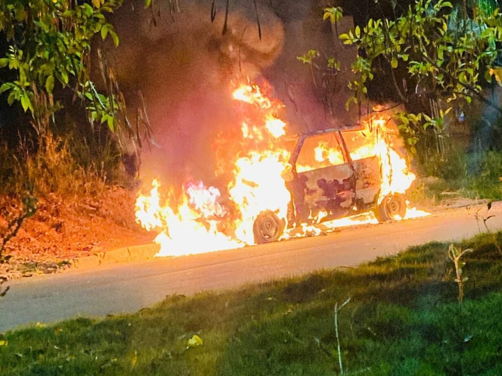 Um veículo acabou sendo destruído por fogo na noite deste sábado (08), na Avenida Brasil, Centro de Santa Luzia D Oeste RO.