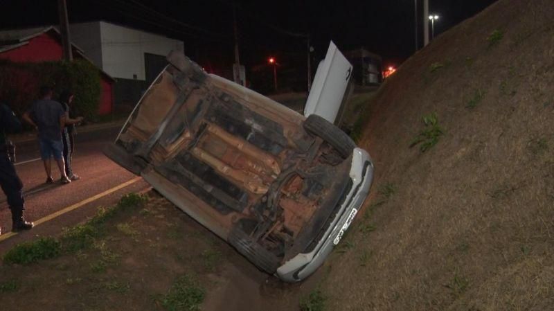 O motorista de um carro de passeio acabou perdendo o controle da direção e tombou o veículo na marginal da BR-364 próximo a um motel, no último fim de semana em Cacoal.