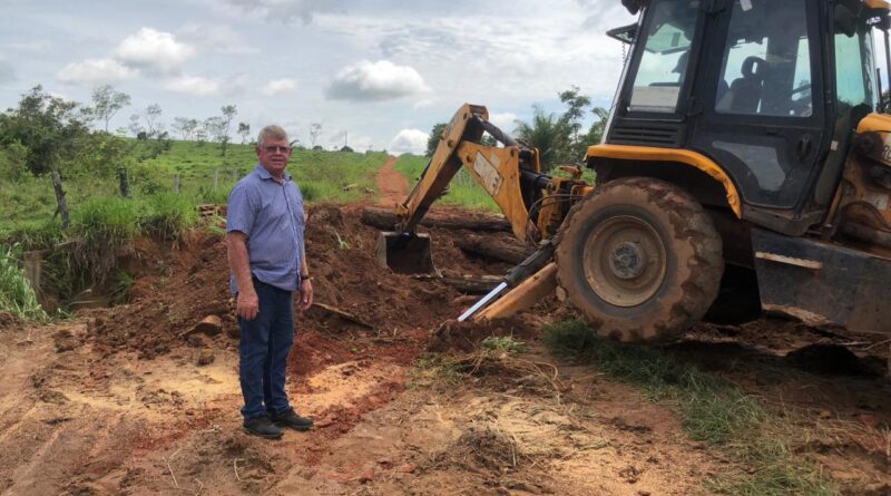 O vice-prefeito Alcides Rosa esteve acompanhando os trabalhos da Secretaria Municipal de Obras e Serviços Públicos (SEMOSP) no travessão que liga a linha 160 a 156 lado sul.