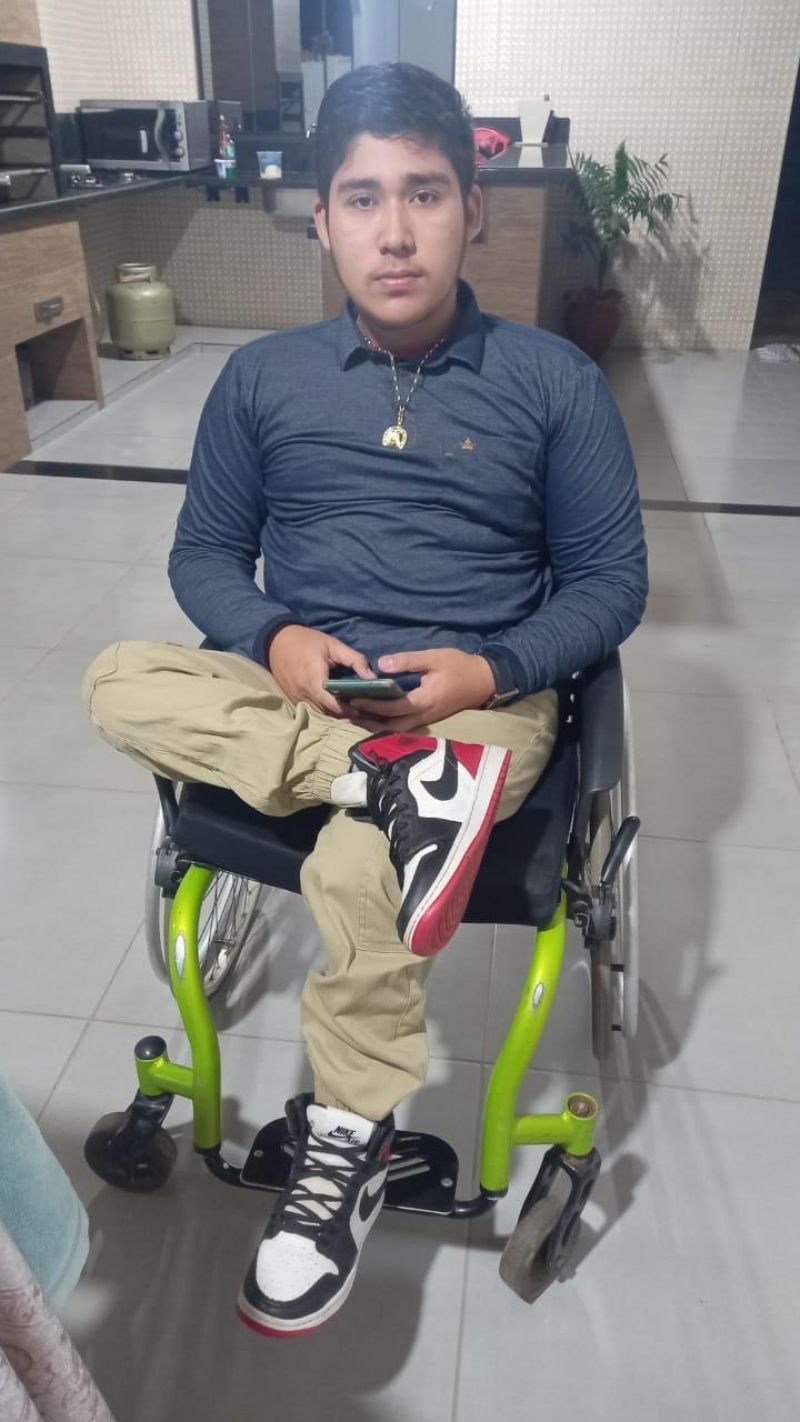 Gustavo Egert, que nasceu com um problema congênito na coluna e é cadeirante, é filho do casal Laudismar Egert (popular Baxim) e Sandra Albino da Costa Egert, moradores da Linha 188, lado Sul, km 2,5, no município de Santa Luzia.
