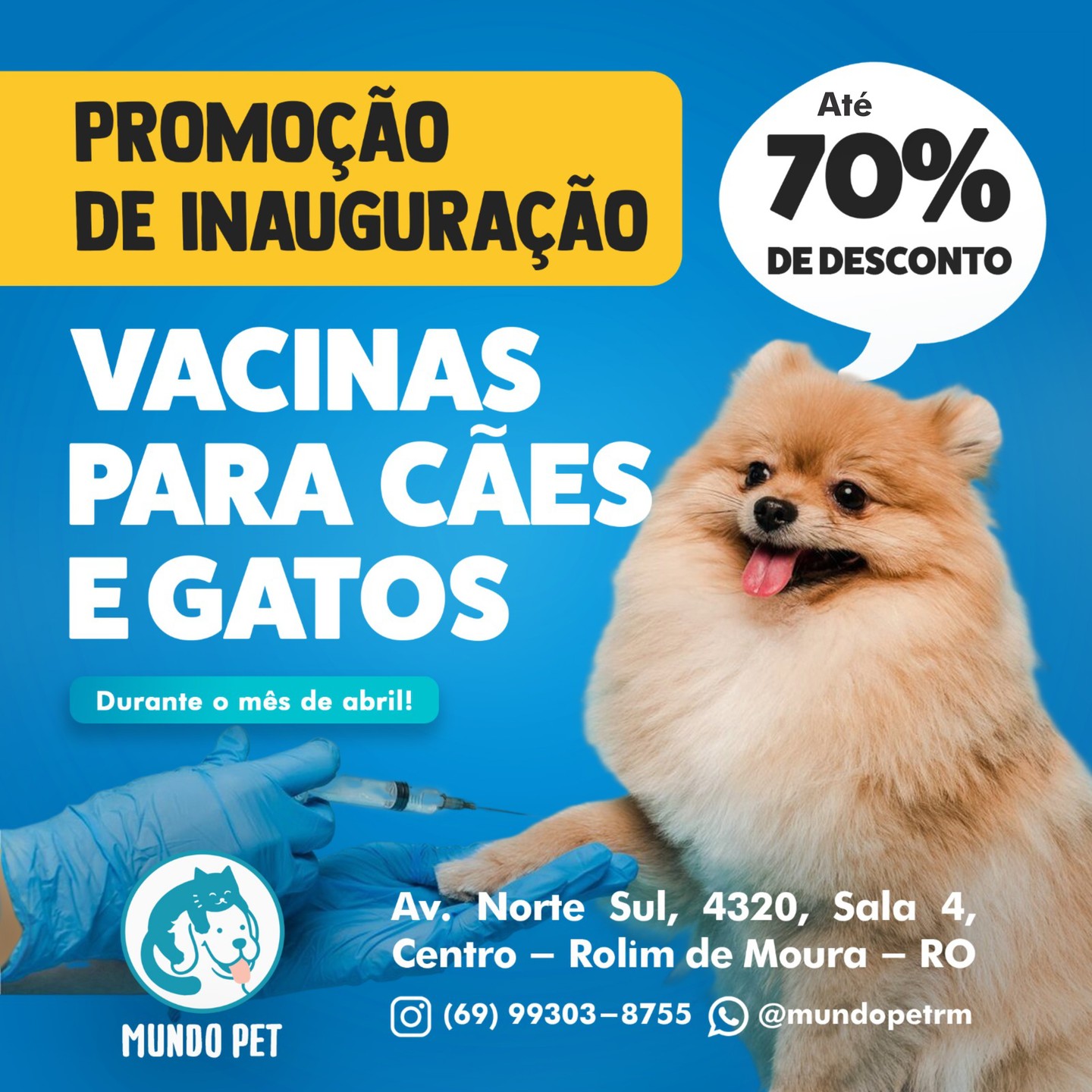 Mundo Pet oferece promoção de inauguração com vacinas para cães com até 50% de desconto!